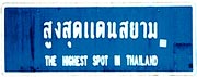 | heeft het lange parcours gewon-nen, nummer 2 was een Engels-man van 30 en nummer 3 een Thais meisje van 15. En de meeste renners die ik zag zwoe-gen waren mannen. Er worden natuurlijk veel foto’s gemaakt van hen die het hebben gehaald. Luide muziek schalt en er heerst een uitgelaten stem-ming. Nieuwkomers worden met applaus ontvangen. Naast de finish staat een bord: Het hoogste punt van Thailand. Er gaat een smal paadje iets verder naar boven, na 50 meter bereik je dan echt het hoogste punt van Thailand. . ![]() Ik ga tezamen met opgewonden renners en hun fiets naar boven. Bij het hoogste punt is een podium waar klimmers zich met de fiets hoog boven hun hoofd laten fotograferen. Boven hen hangt een bord met daarop in het Thai en Engels: Het hoogste punt van Thailand. Ik loop nog zo’n 40 meter verder op het pad dat nog iets naar boven gaat. En ja hoor, daar is dan echt het aller-hoogste punt van Thailand. Een bord geeft aan dat we op een hoogte zijn van 2565 meter, 33 centimeter en 4,1 millimeter. Het hoogtepunt van de dag! |