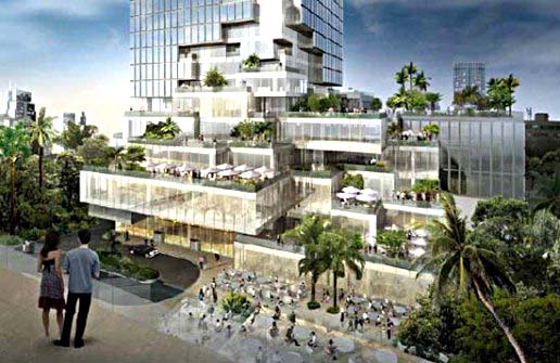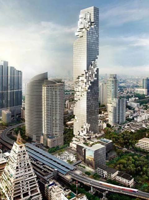 De Duitse architect Ole Scheeren van Office for Metropolitan Architecture (OMA) heeft een wolkenkrabber ontworpen voor Bangkok, Thailand. Het gebouw, een 77 verdiepingen tellende glazen toren, kreeg de naam MahaNakhon, ‘grote metropolis’. Deze herfst wordt begonnen aan de bouw van het nieuwe hoogste gebouw van de Thaise hoofdstad.